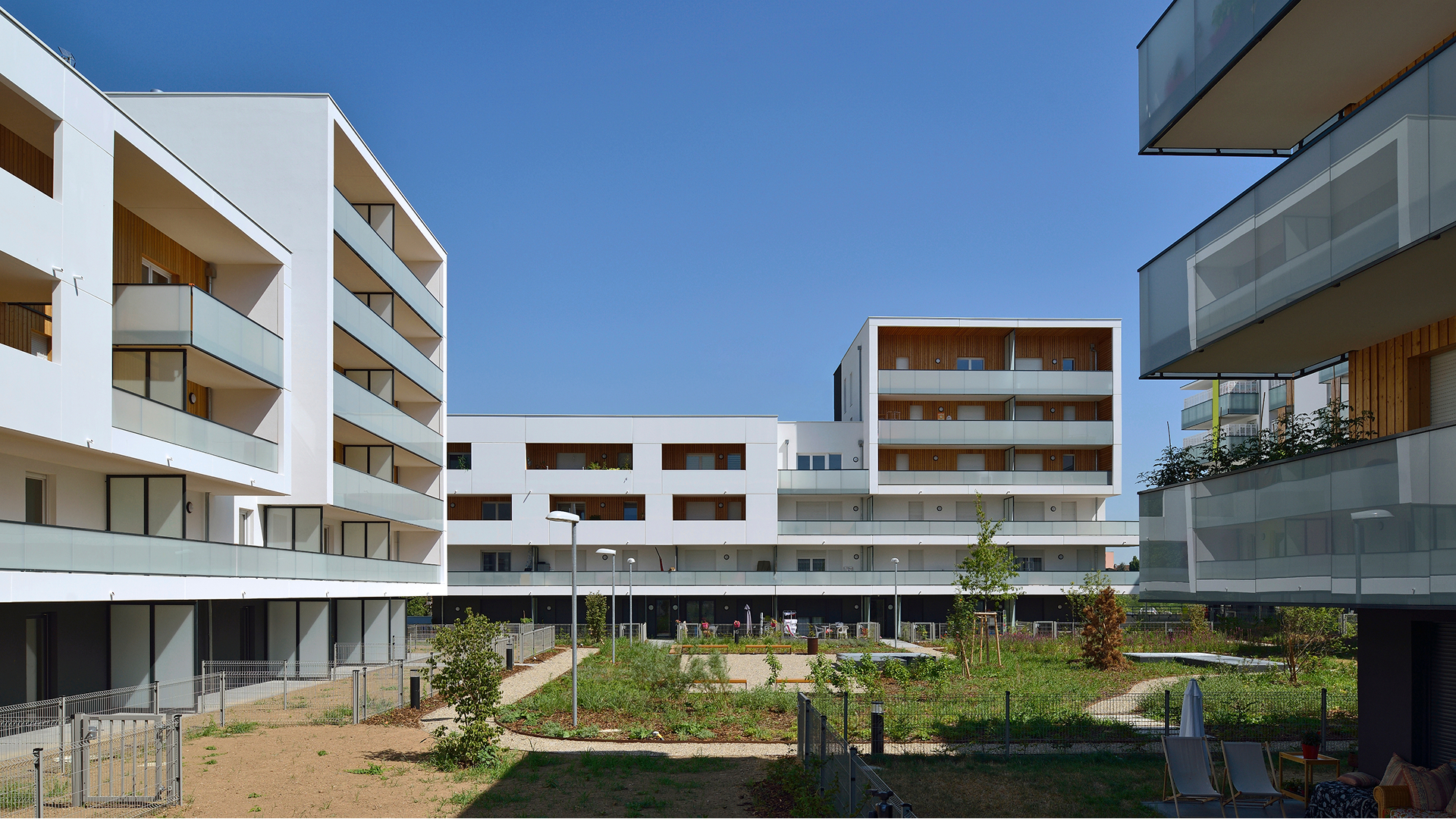 Construction de 127 logements et locaux d’activités au sein de l’écoquartier du Parc des Tanneries. Appartements 2 à 4 pièces répartis sur 3 bâtiments autour d’un cœur d’îlot paysagé. 151 places de stationnement, jardins partagés et privatifs, toitures végétalisées.