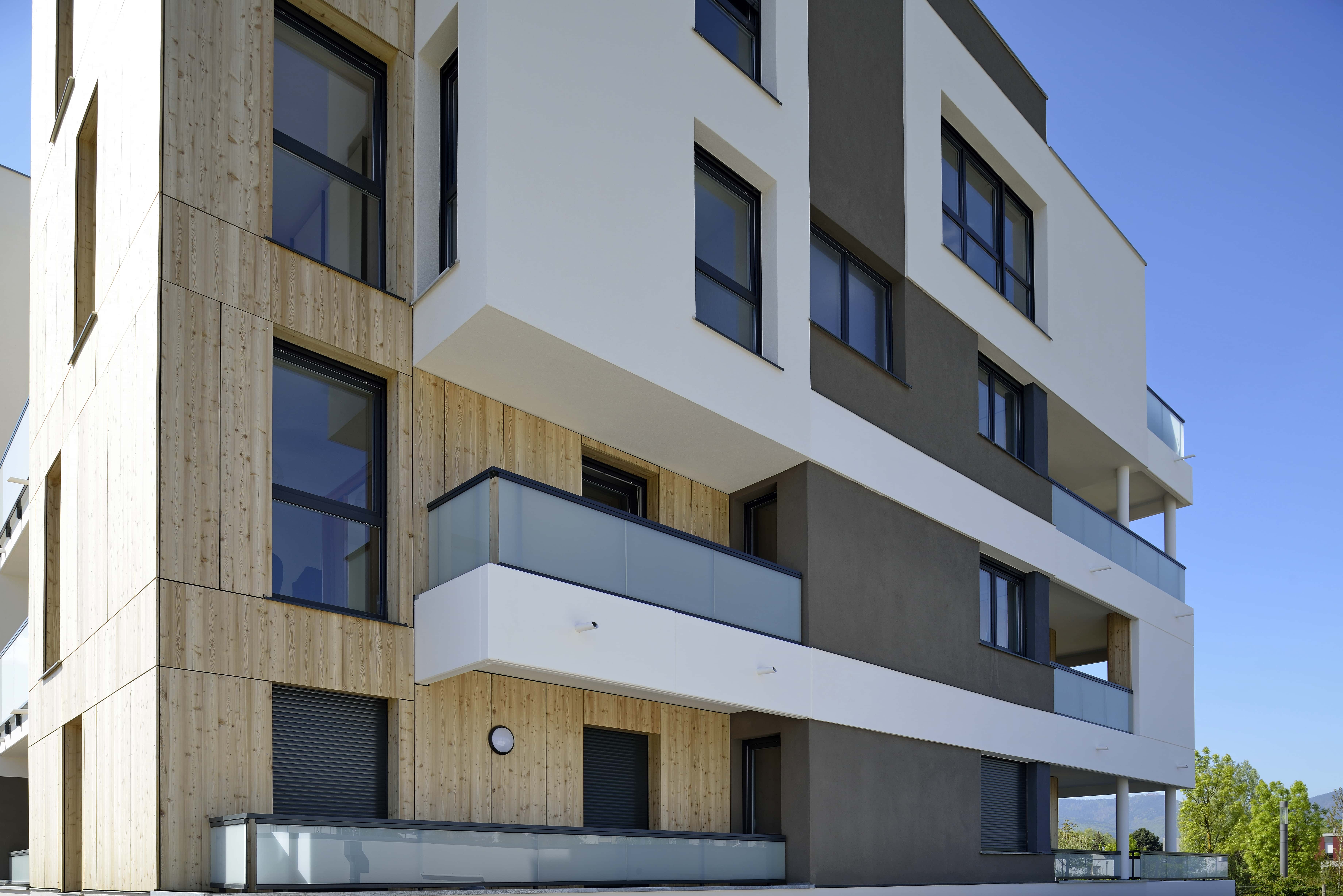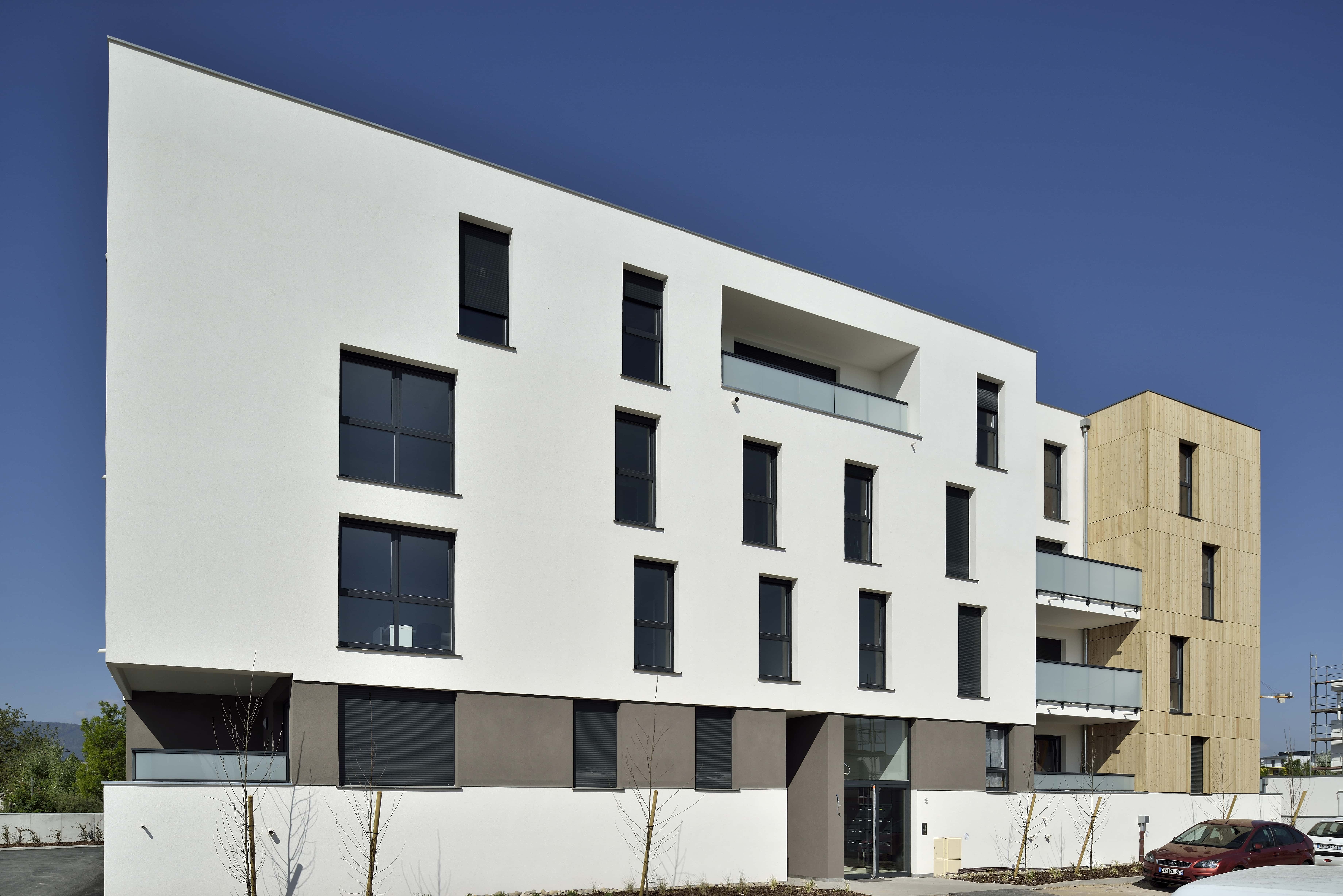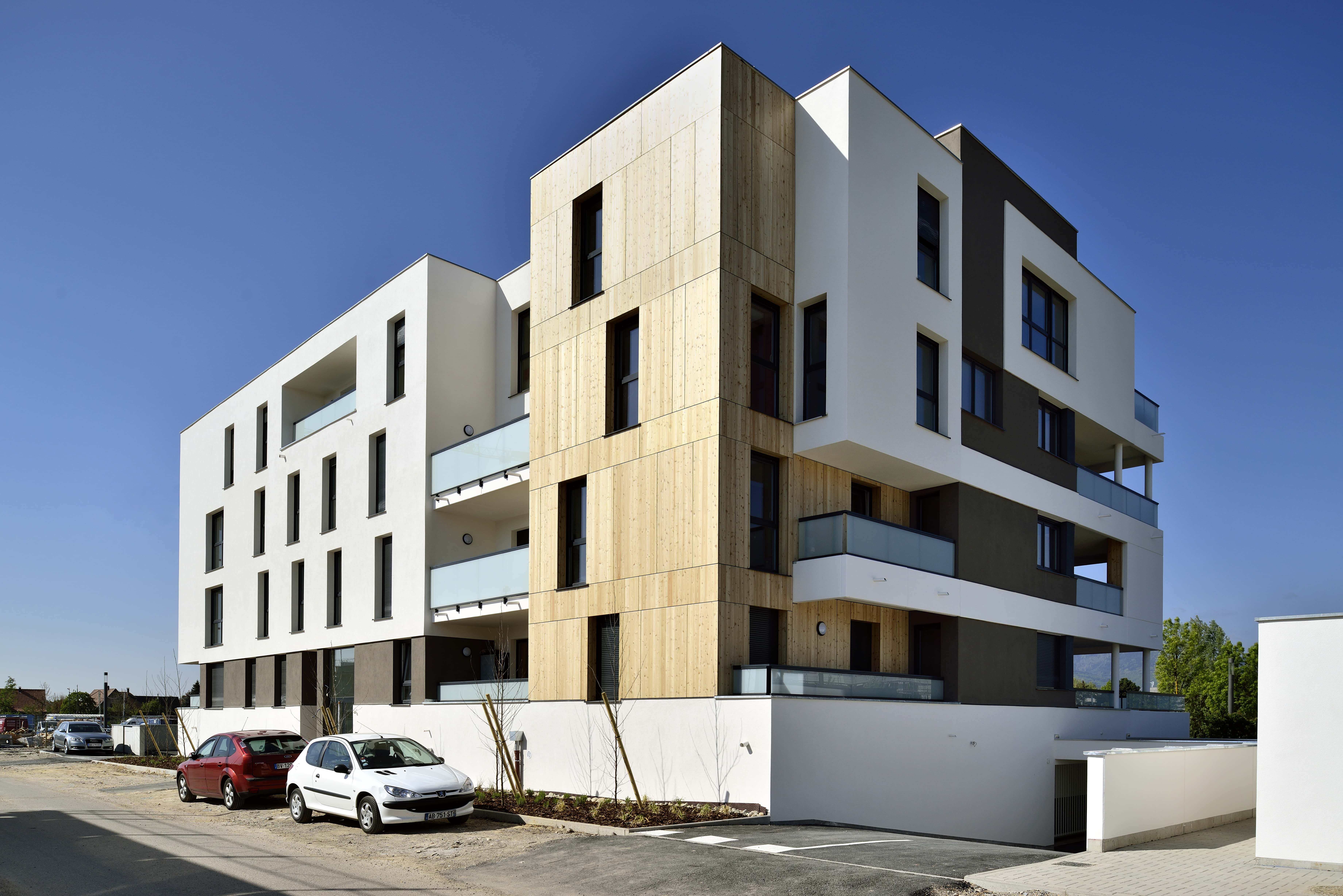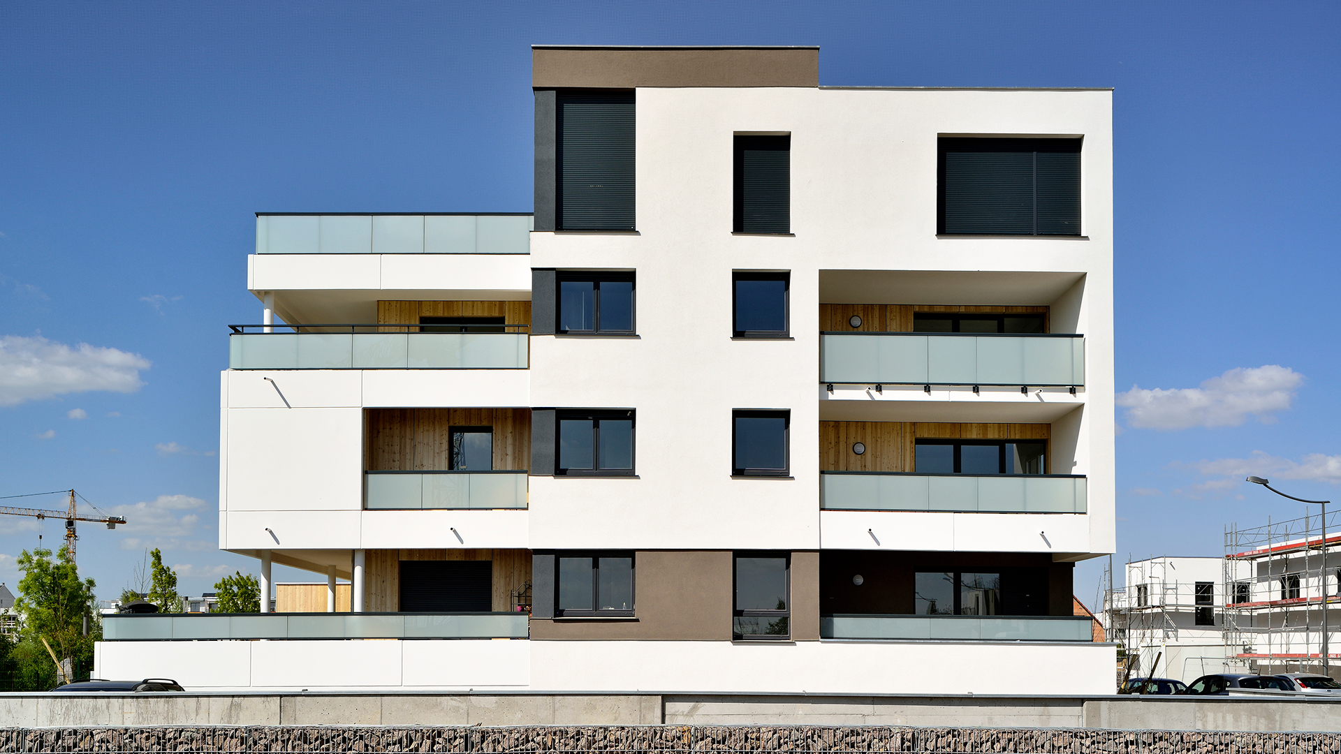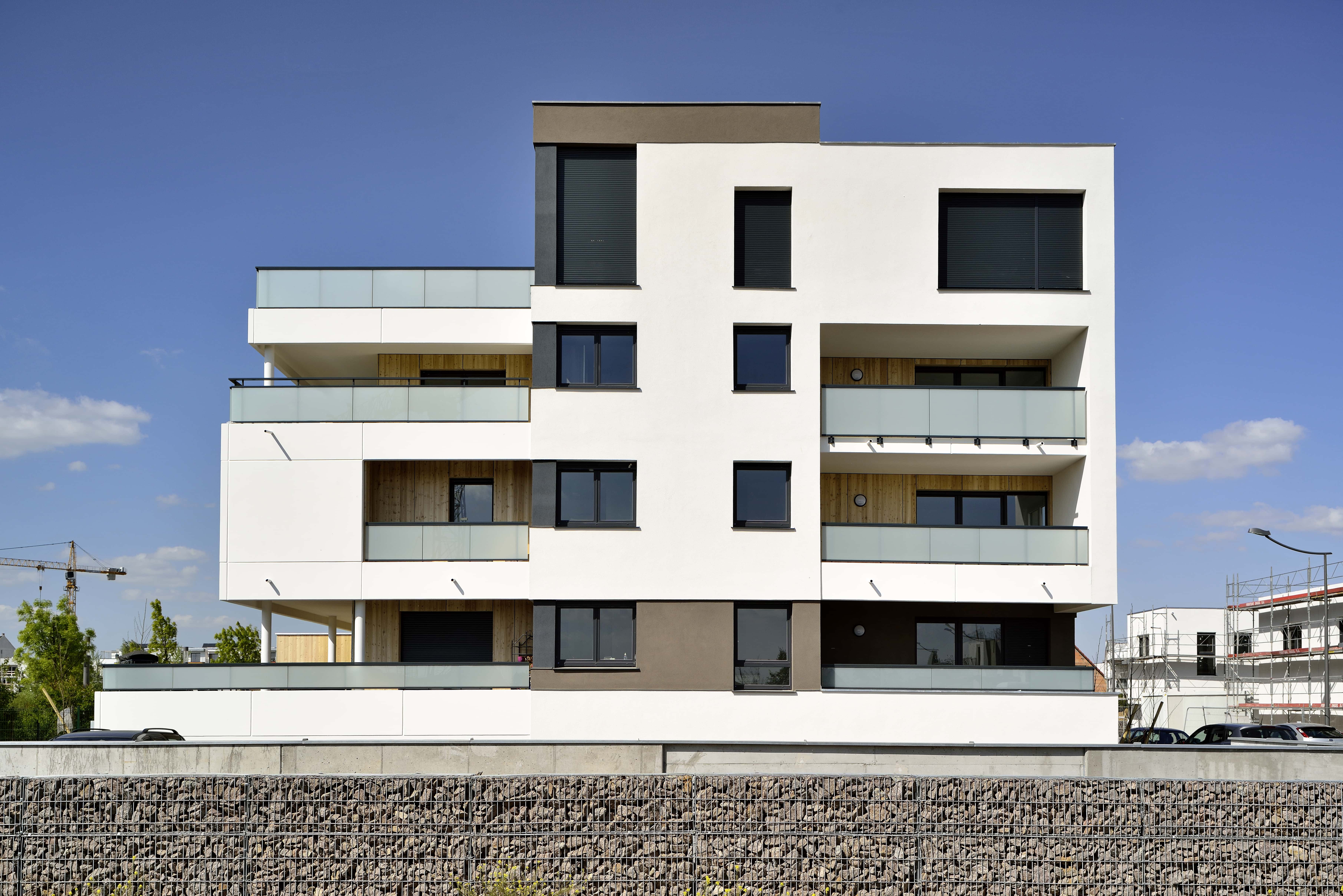 Construction de deux immeubles totalisant 37 logements collectifs avec 64 places de stationnement (dont 38 en sous-sol) au Parc des Roselières. Projet intégrant confort, fonctionnalité et performance énergétique.