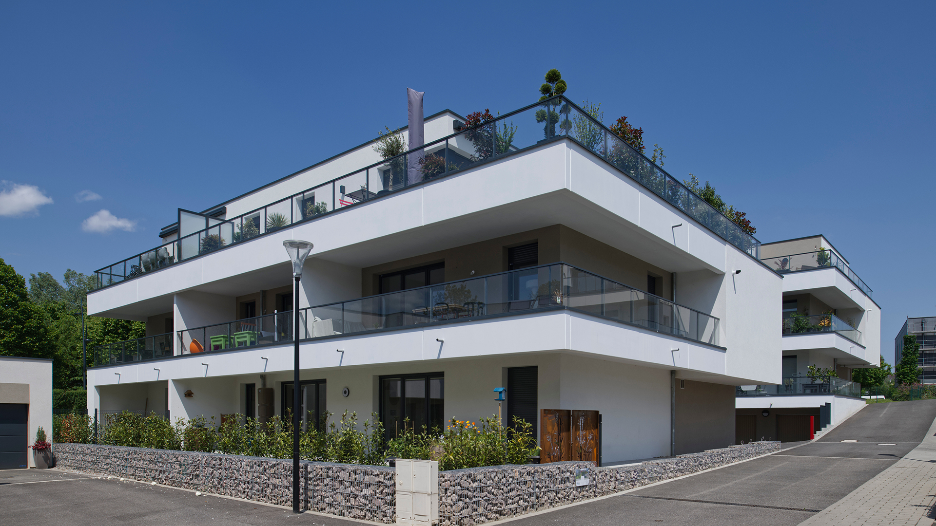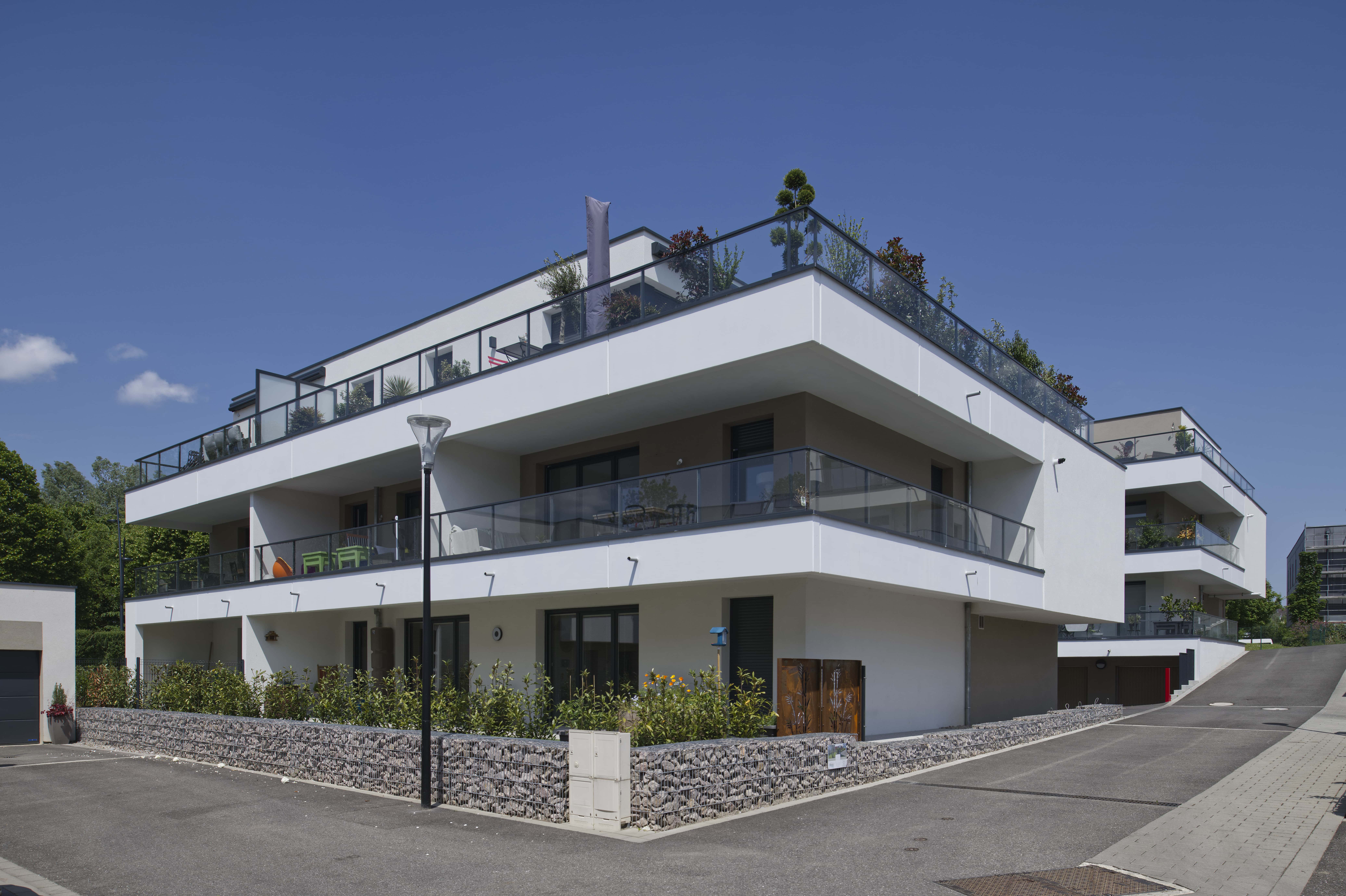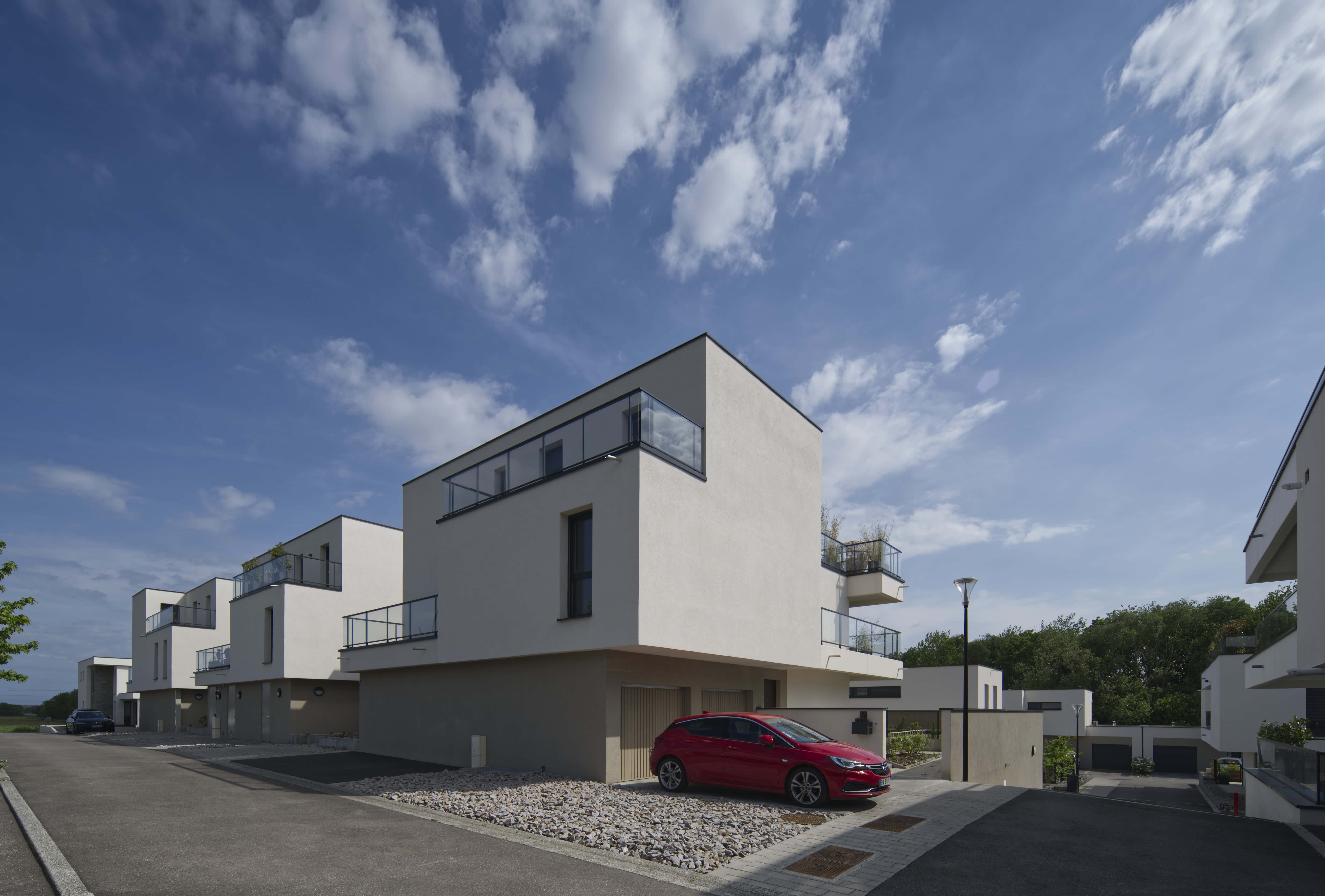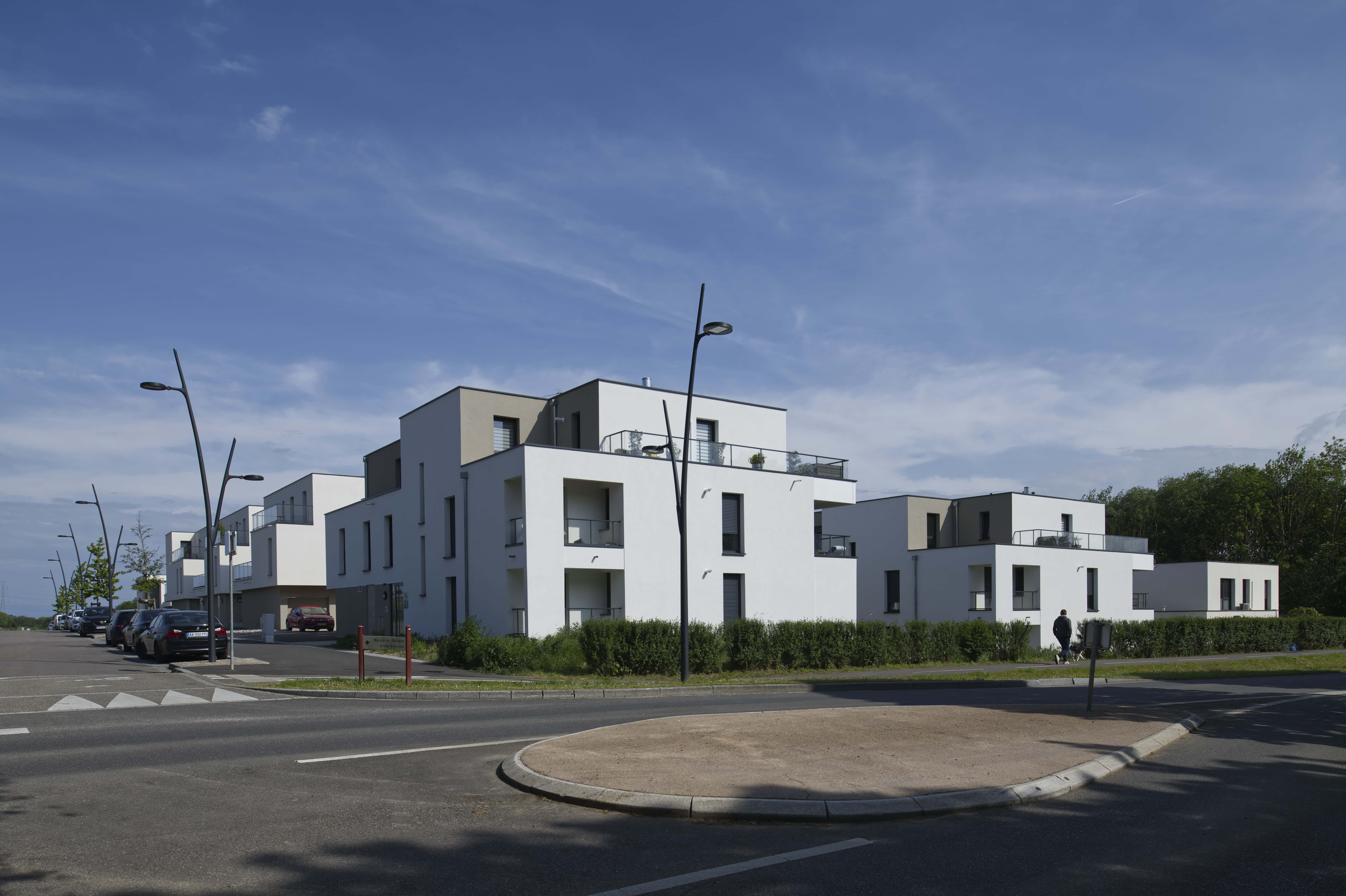 Ensemble de 41 logements répartis sur 3 immeubles collectifs et 14 maisons individuelles en accession. Projet en terrasses successives avec orientation principale au sud, toitures végétalisées, jardins privatifs et matériaux biosourcés. Organisation simple et lisible favorisant cohérence architecturale et optimisation des coûts.