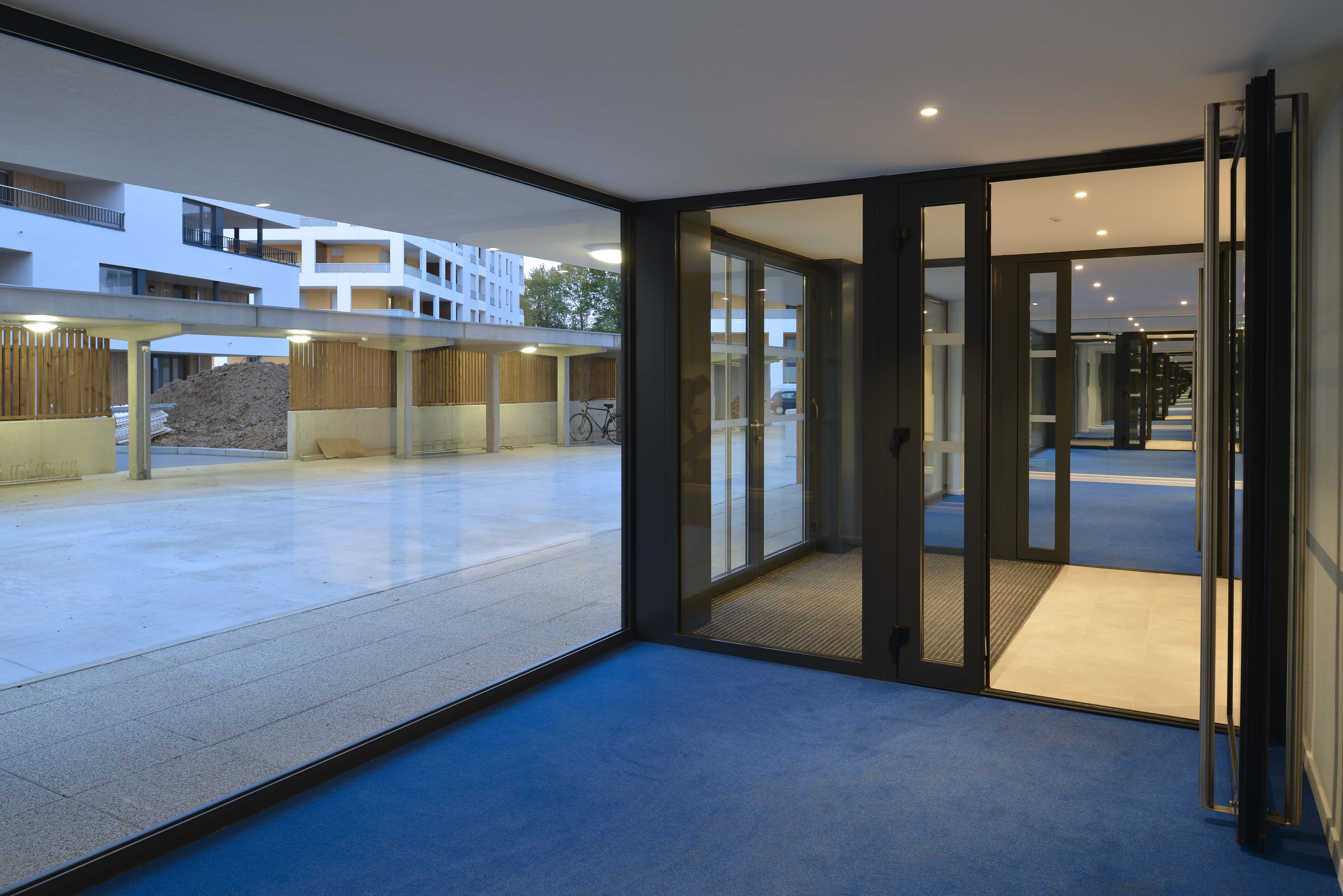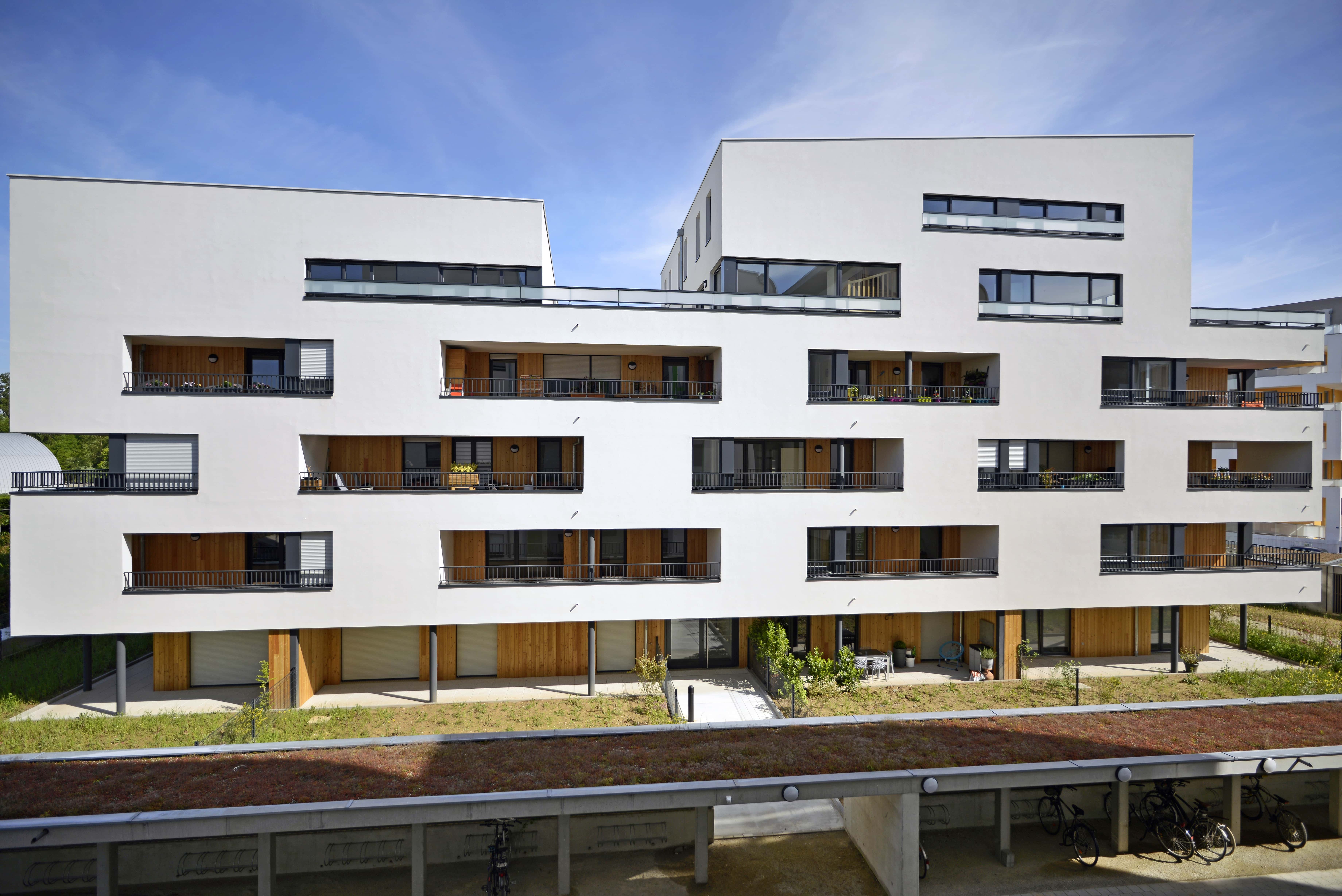 Construction de 56 logements collectifs répartis sur deux immeubles dans la ZAC Rives du Bohrie. Halls lumineux, parvis mutualisés, cheminements piétons, terrasses protégées, locaux vélos et OM intégrés en RDC, duplex en attique.