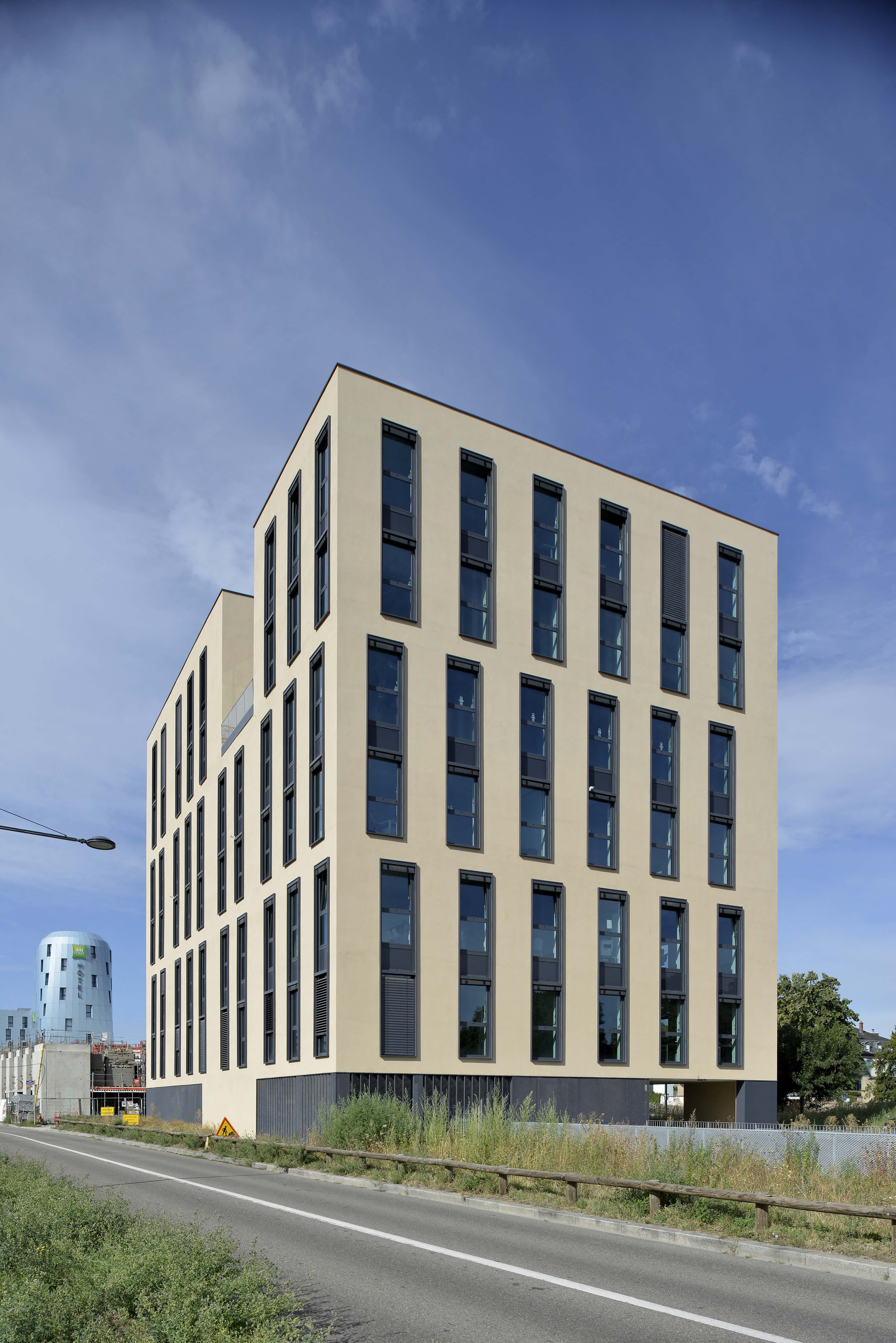 Implanté dans la ZAC Gare de Mulhouse, le projet porte sur la construction d’un immeuble tertiaire de bureaux en R+6 et d’un parking en rez-de-chaussée. La volumétrie compacte et rationnelle favorise les performances énergétiques du bâtiment tout en garantissant un apport généreux de lumière naturelle. Le traitement architectural sobre et pérenne assure son intégration harmonieuse dans le tissu urbain existant.