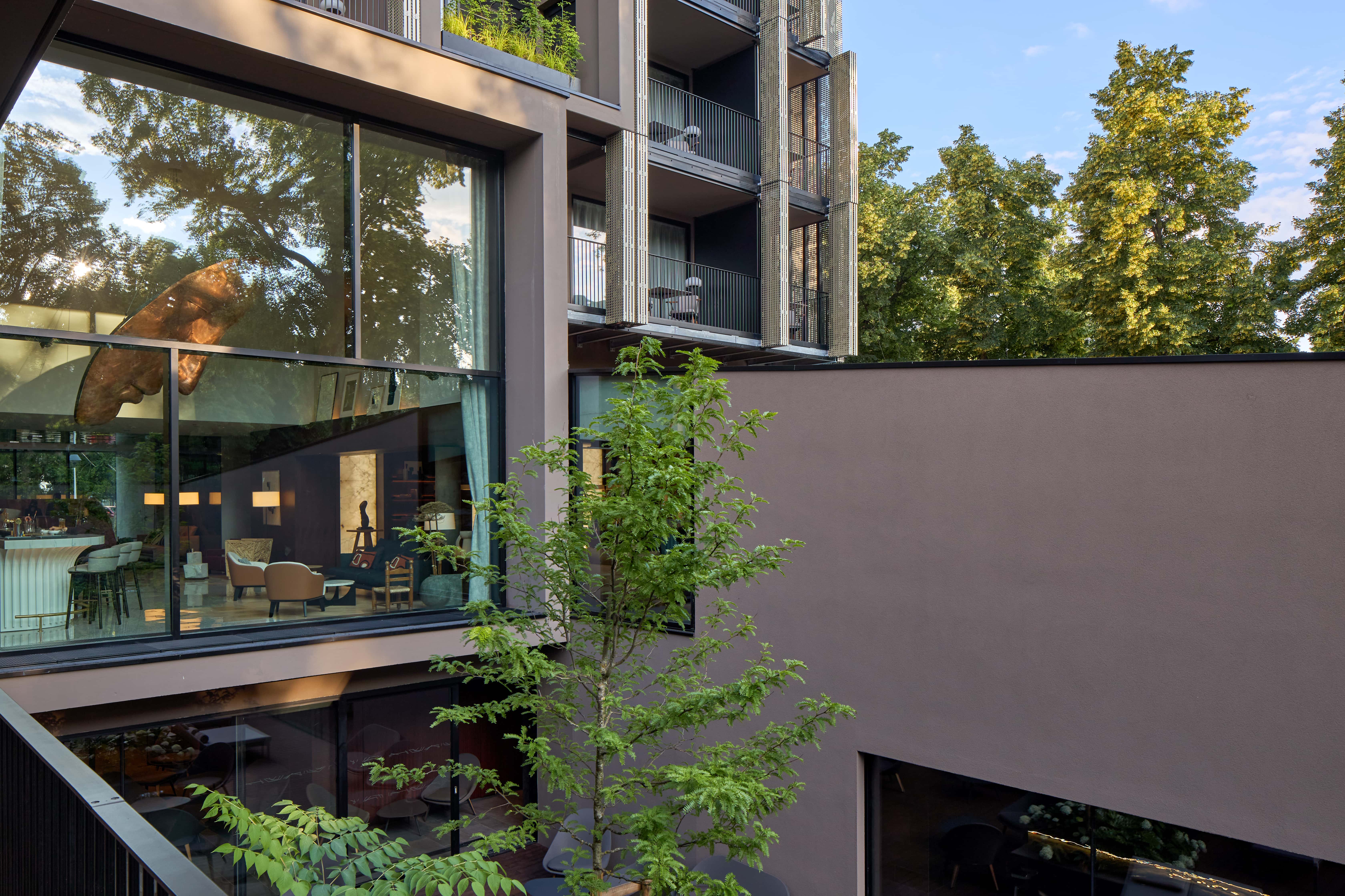 Au cœur du parc du Champ de Mars à Colmar, l’Hôtel L’Esquisse MGallery s’inscrit avec délicatesse dans un site paysager remarquable. Construit sur l’emplacement de l’ancien Hôtel Mercure, il développe une architecture transparente et minérale en dialogue avec les tilleuls centenaires du parc. Les 71 chambres et suites, toutes prolongées par une terrasse, offrent des vues ouvertes et une lumière généreuse. Le Spa, organisé autour d’un patio central, compose un univers apaisant mêlant pierre, bois et métal. Le restaurant, dirigé par le chef Jean-Yves Schillinger, prolonge l’expérience par une gastronomie en lien étroit avec l’espace et le paysage.