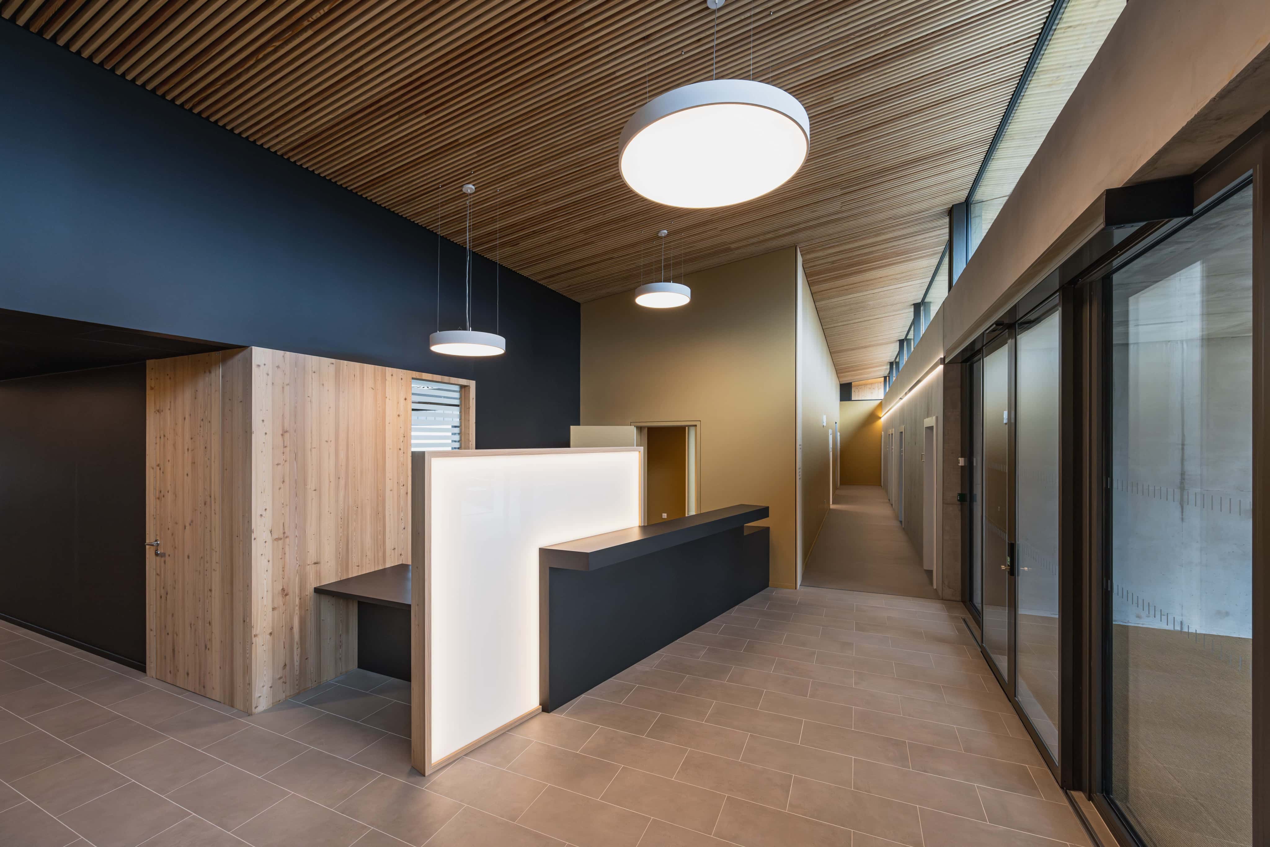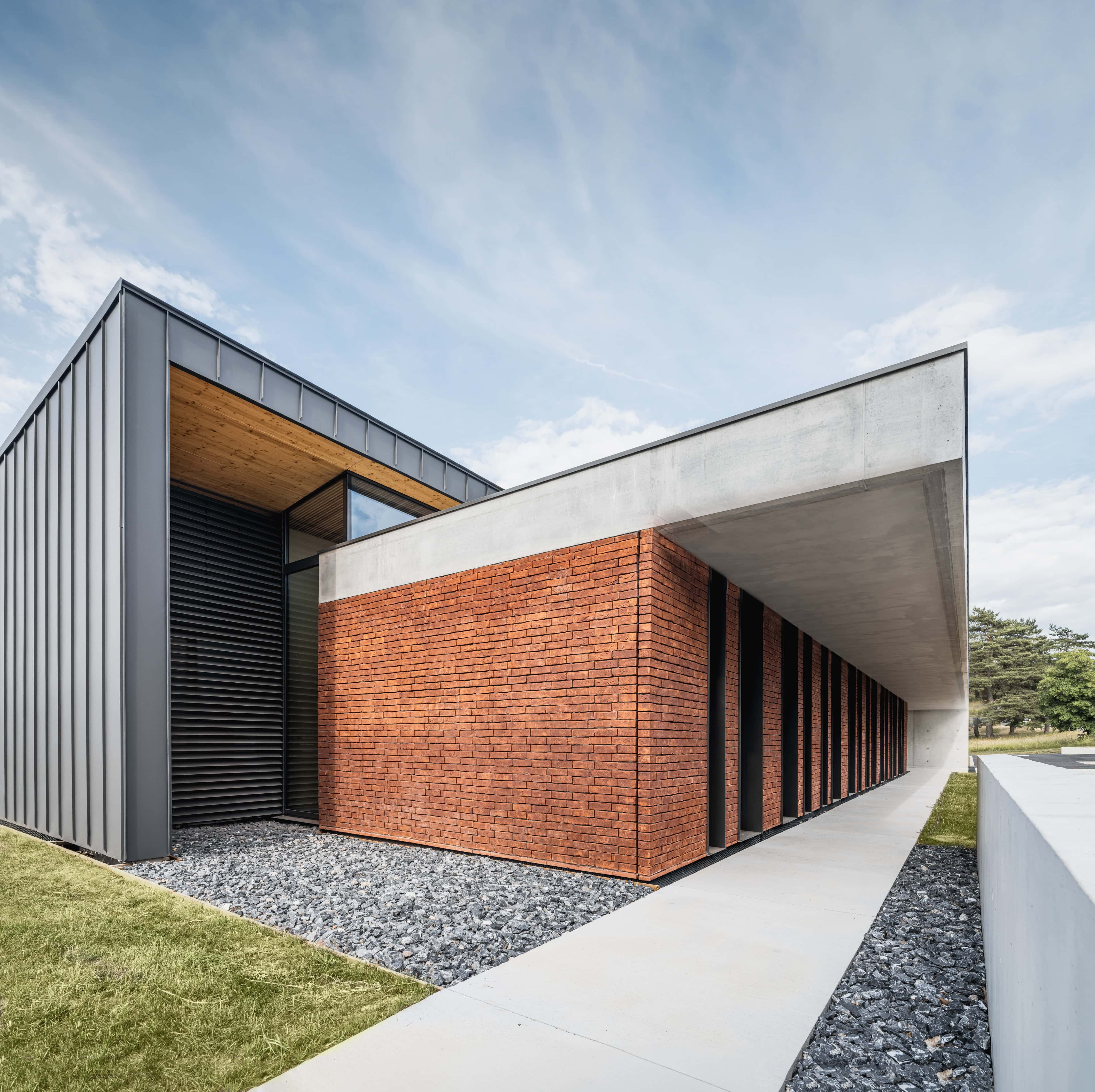 Livrée pour la base de défense de Bitche, cette antenne médicale développe une architecture rationnelle, élégante et durable. Le bâtiment adopte une volumétrie compacte et lisible, fondée sur des principes constructifs simples et l’emploi de matériaux pérennes tels que la brique, le zinc et le béton. Organisé autour de deux patios extérieurs, le plan s’inscrit dans une géométrie régulière, exprimée par de grands pans de zinc. Le projet répond aux exigences fonctionnelles et techniques de la Défense tout en offrant un cadre de soin apaisant. Il privilégie la clarté de l’organisation, la robustesse des matériaux et une esthétique épurée, inscrite dans la durée.