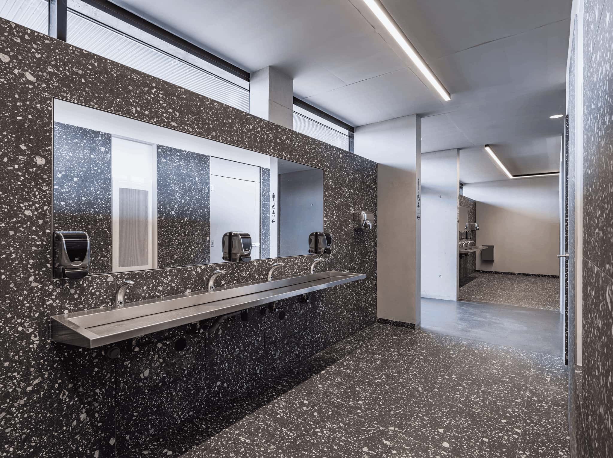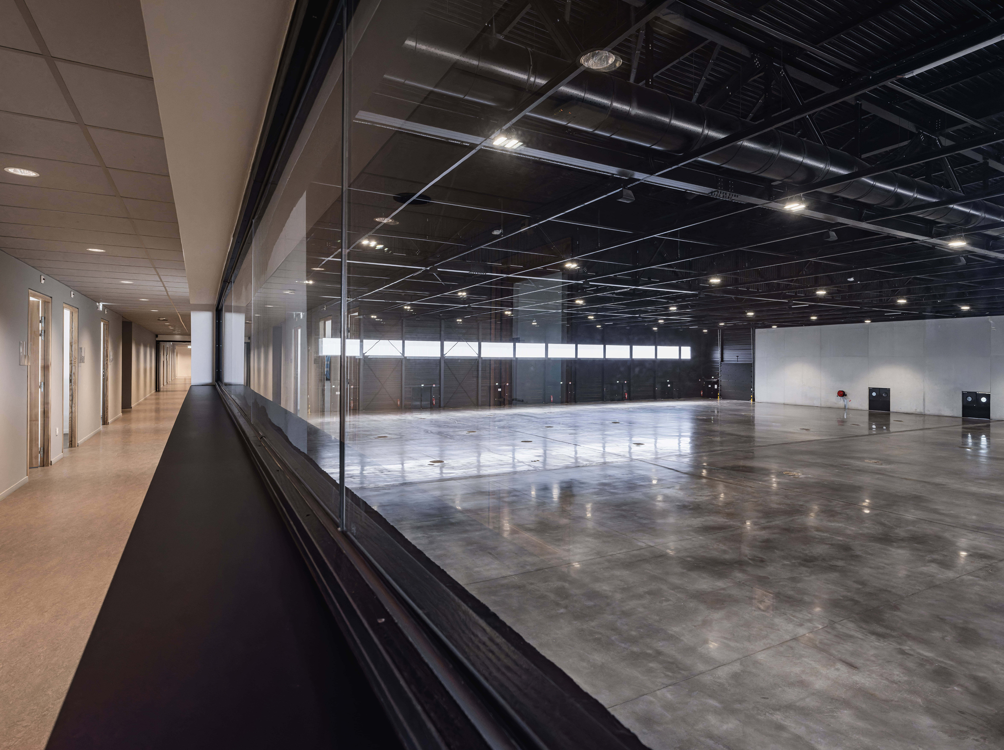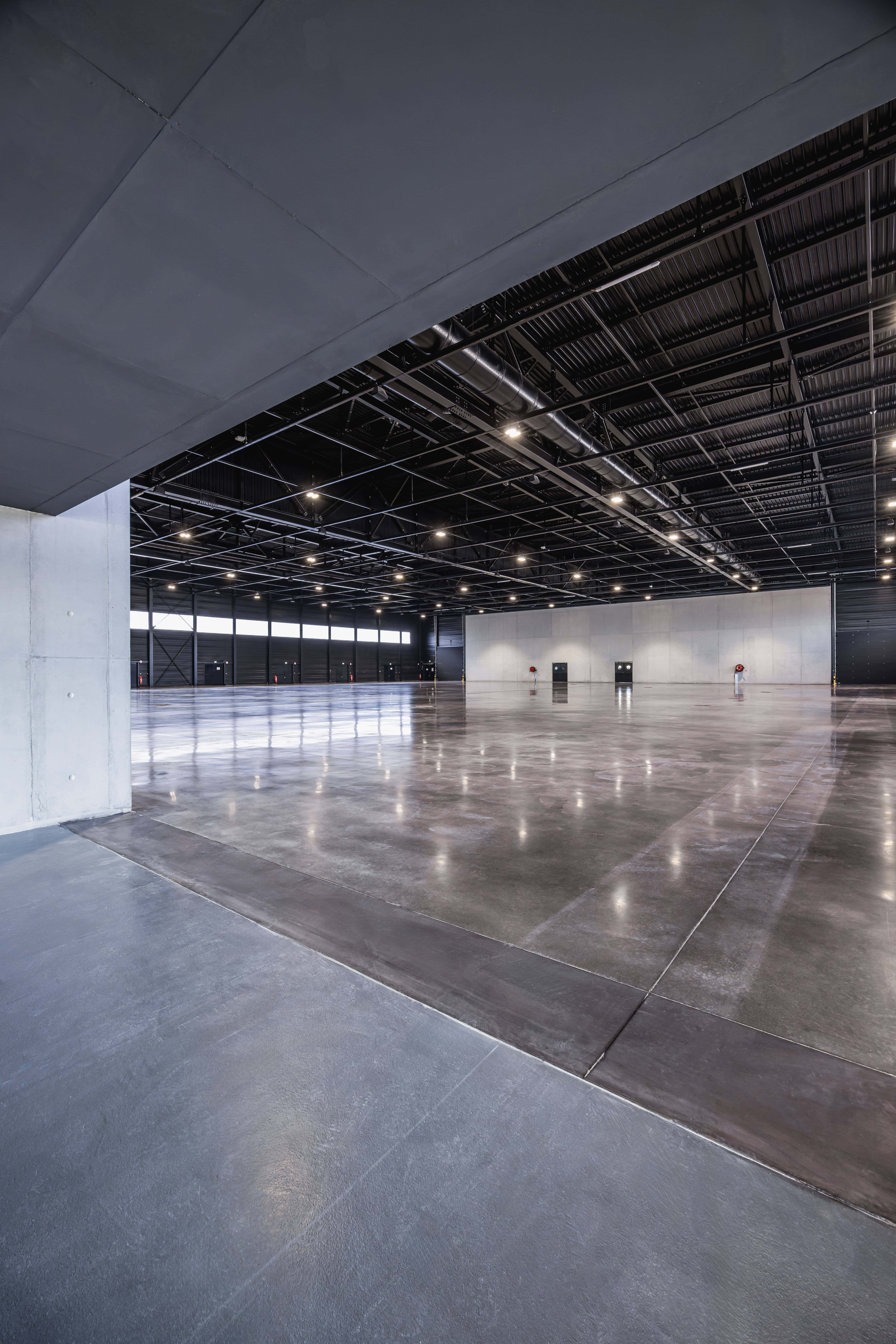 Le projet consiste en la création d’une nouvelle halle d’exposition venant prolonger le bâti existant du Parc Expo de Mulhouse, afin de structurer un parcours visiteurs lisible et continu. Implanté dans l’axe du volume existant, le bâtiment est signalé par un volume totem en porte-à-faux, identifiable à distance et intégrant un écran LED. L’espace d’exposition du rez-de-chaussée est complété par des bureaux et locaux annexes à l’étage, reliés aux bâtiments existants par une passerelle. La structure associe murs porteurs en béton et charpente métallique de grande portée. Les façades alternent béton lasuré et bardage acier, conciliant rationalité économique et expression architecturale.