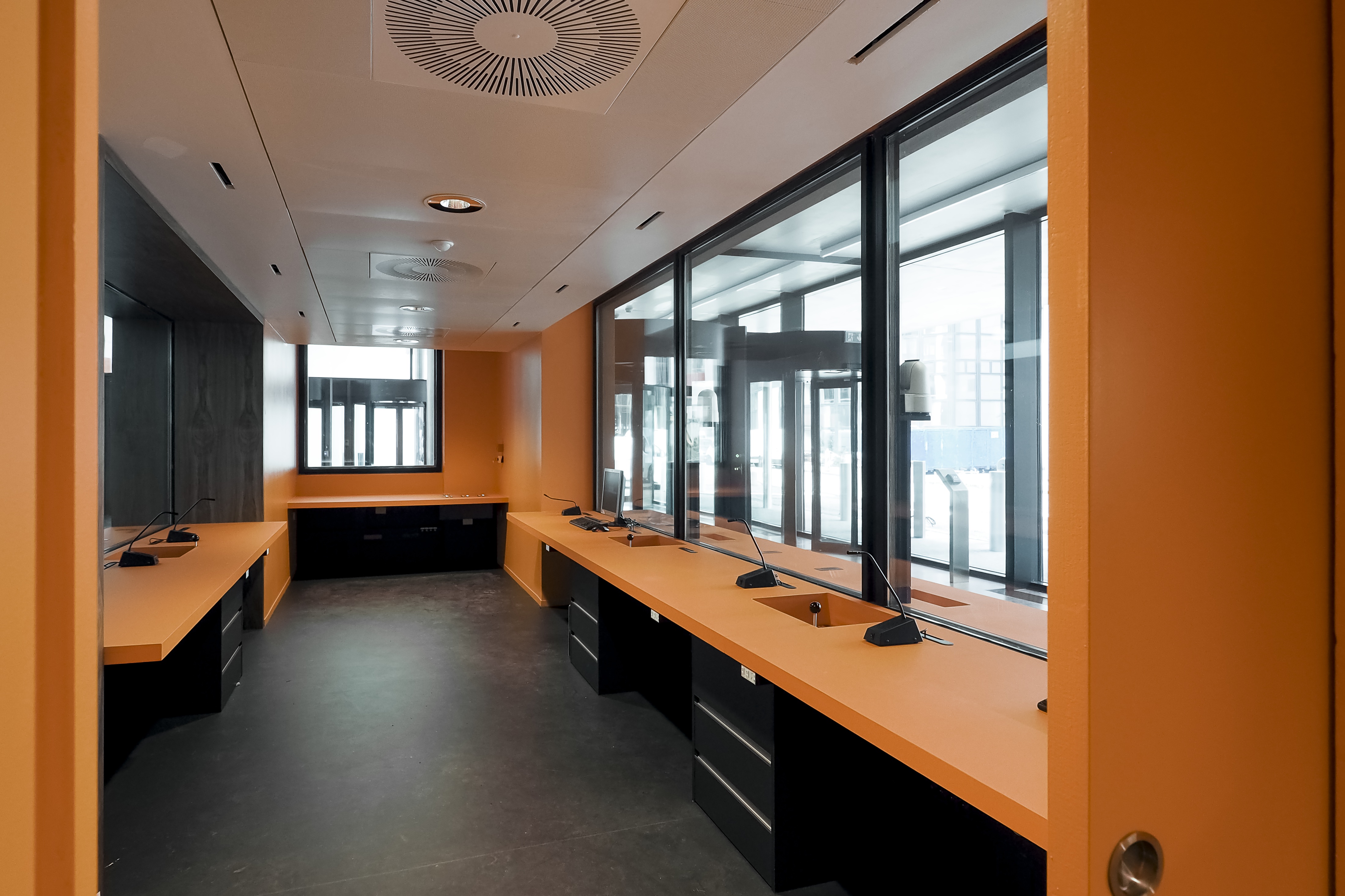 Le pavillon d’entrée WIC est dédié à l’accueil et au contrôle du public accédant au Parlement européen. Conçu comme un espace de transition entre l’espace public et l’enceinte sécurisée, il joue un rôle clé dans la perception et l’organisation de l’entrée. L’architecture propose un parcours lisible et fluide, capable de canaliser les flux tout en intégrant des dispositifs de sécurité performants. Transparence, glissements spatiaux et clarté de l’organisation permettent de concilier efficacité opérationnelle, confort d’usage et qualité architecturale dans un contexte institutionnel à fortes exigences.