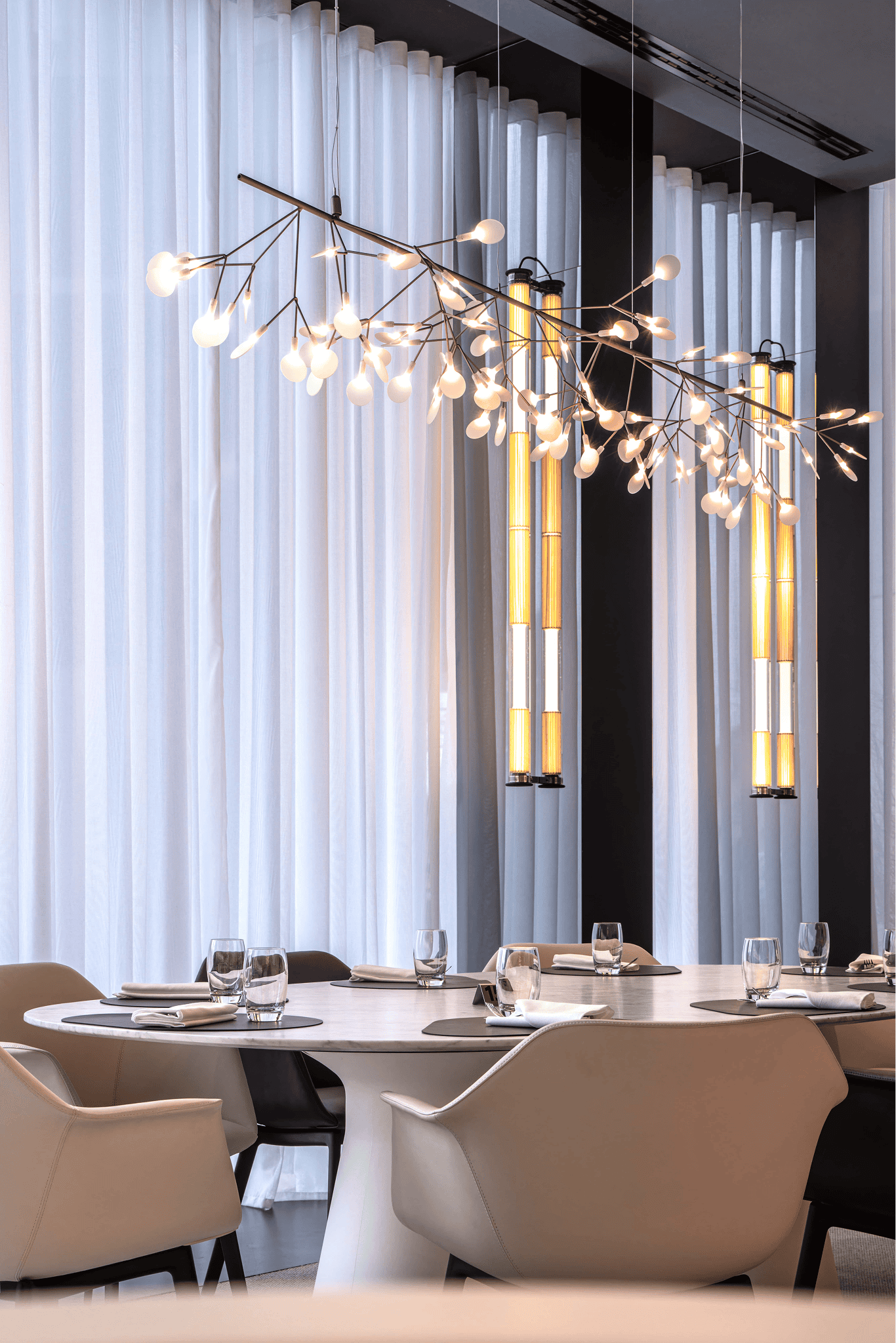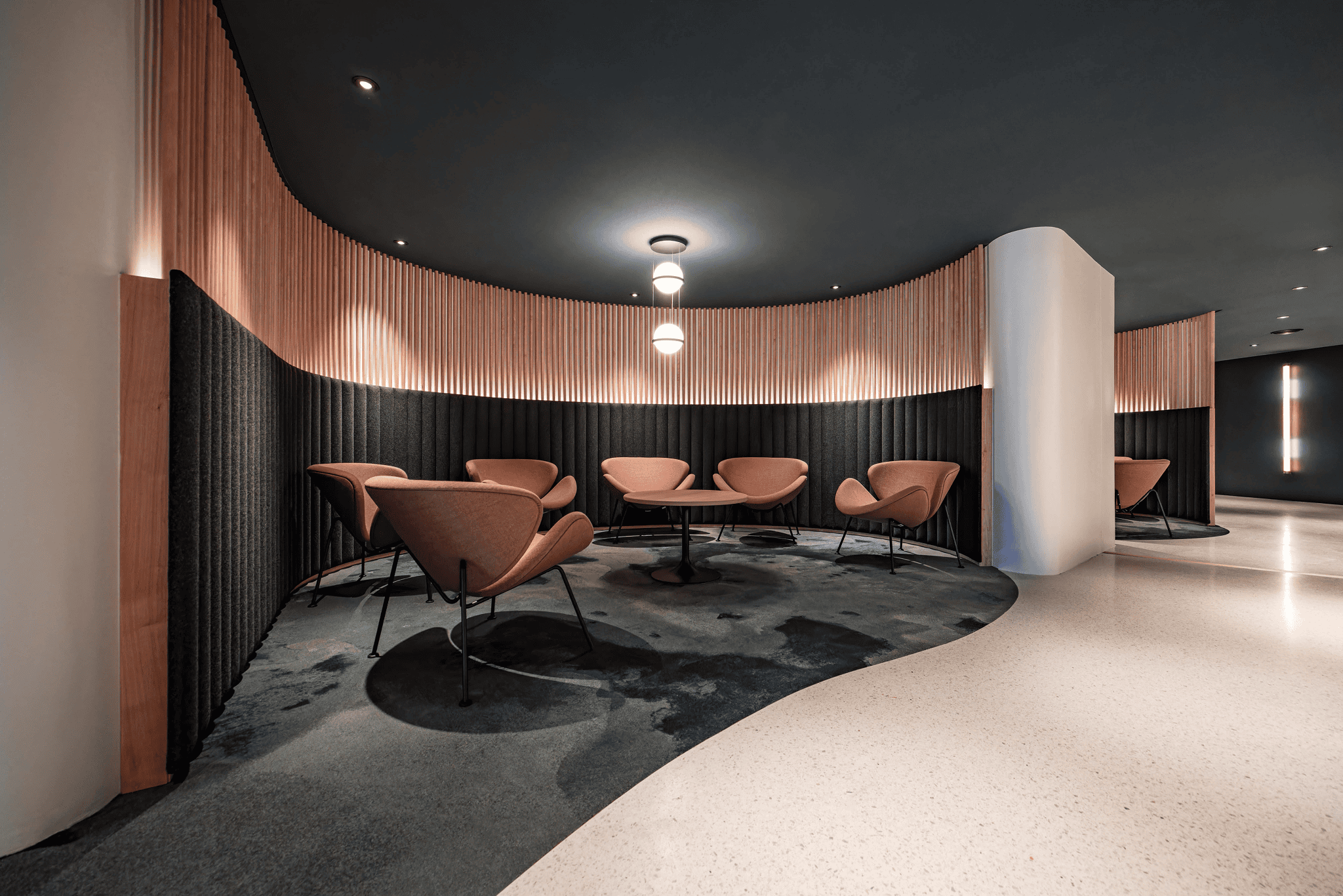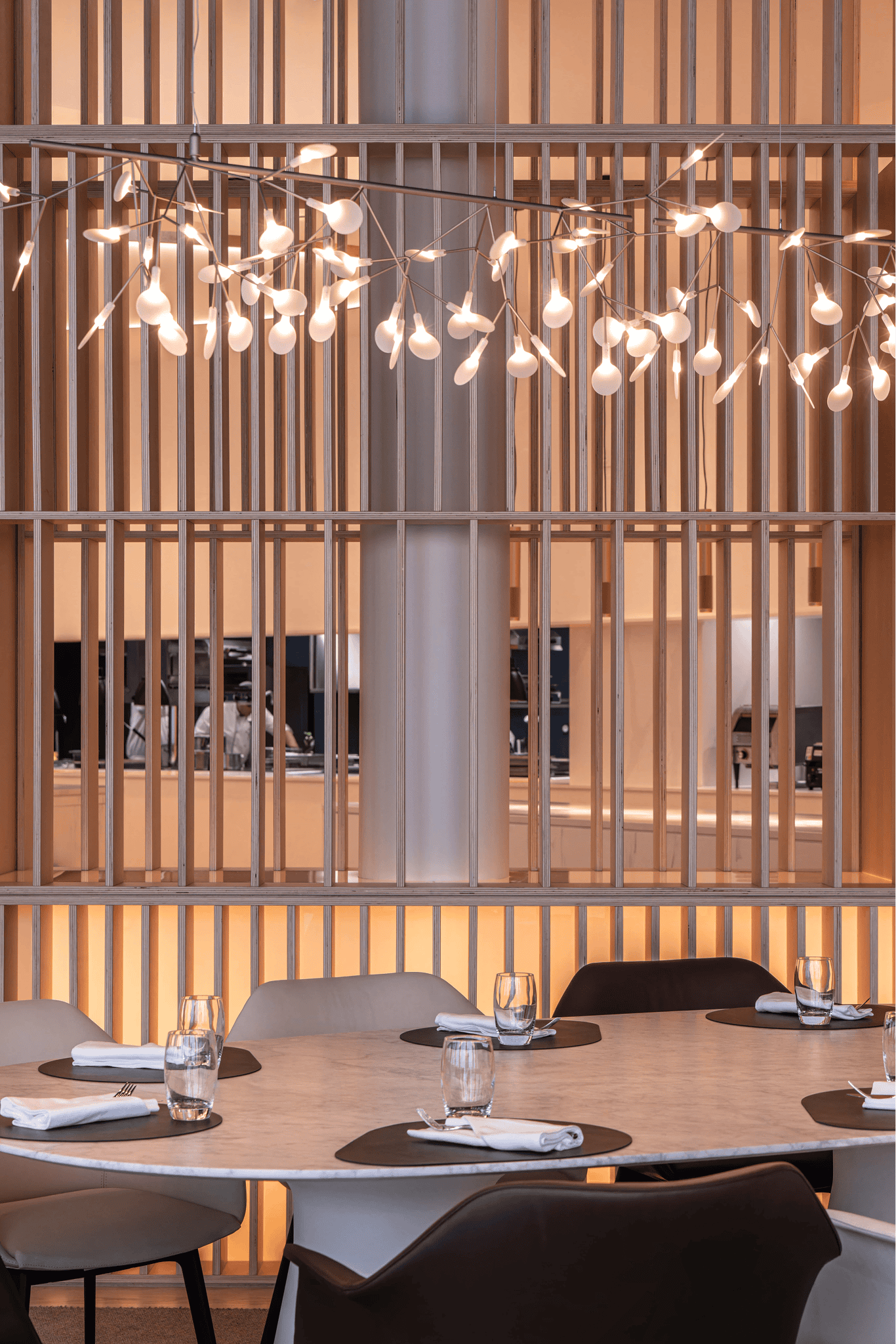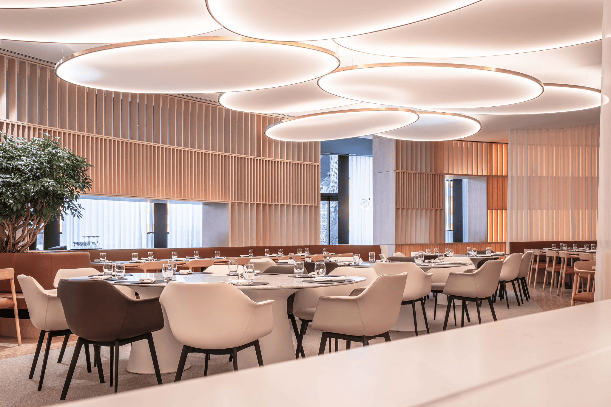 Au cœur du Parlement européen à Strasbourg, le restaurant et les salons des députés sont conçus comme un espace de représentation et d’échange. Le projet réinterprète l’architecture courbe existante par un large vitrage cintré, ouvrant les vues sur la rivière et réintroduisant une lumière naturelle structurante. Matériaux nobles, mobilier sur mesure et alcôves feutrées composent un cadre propice à la confidentialité, tandis que le traitement acoustique est intégré à l’architecture intérieure. Utilisé lors des sessions parlementaires, l’ensemble incarne une hospitalité institutionnelle exigeante, où usage, confort et représentation convergent.