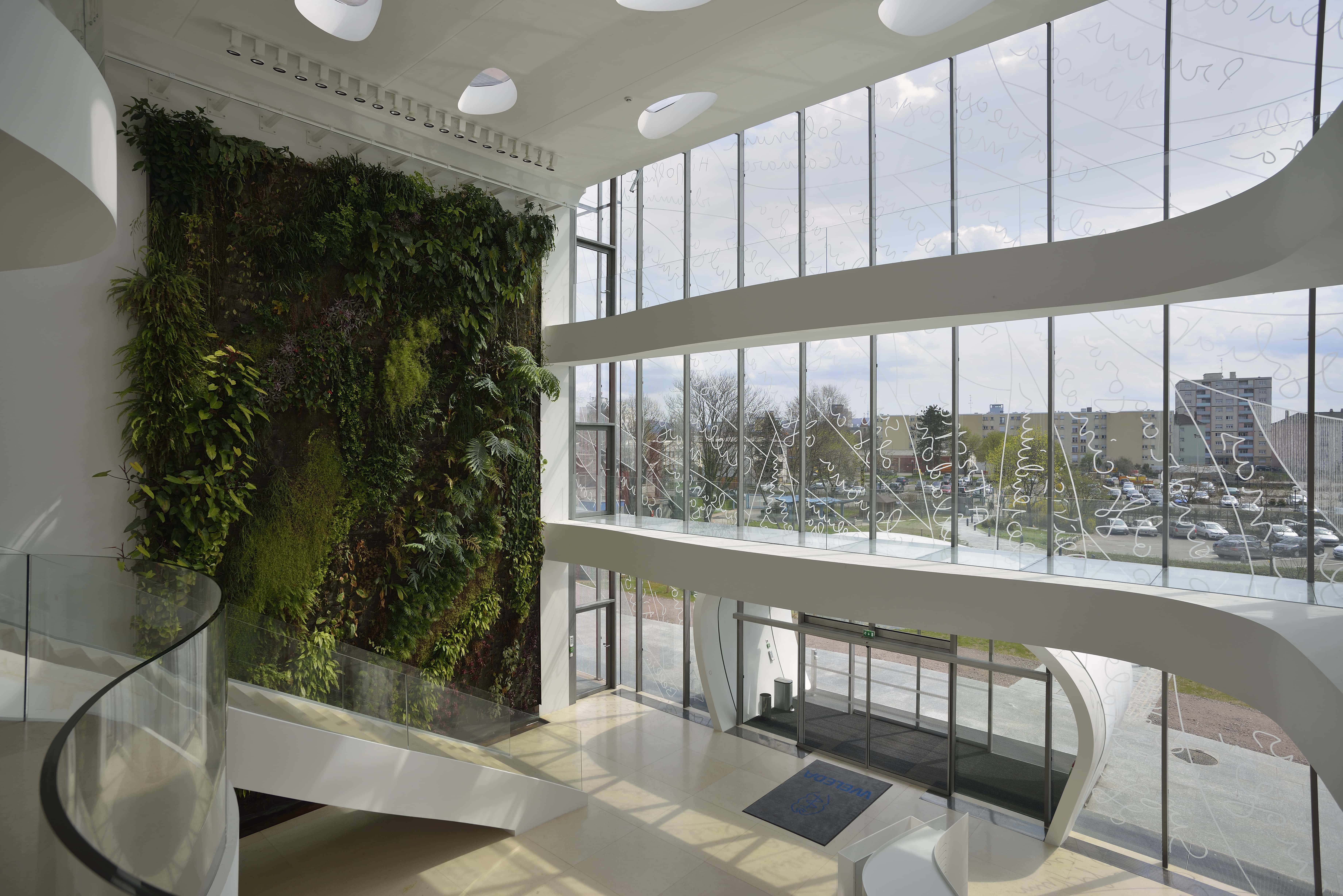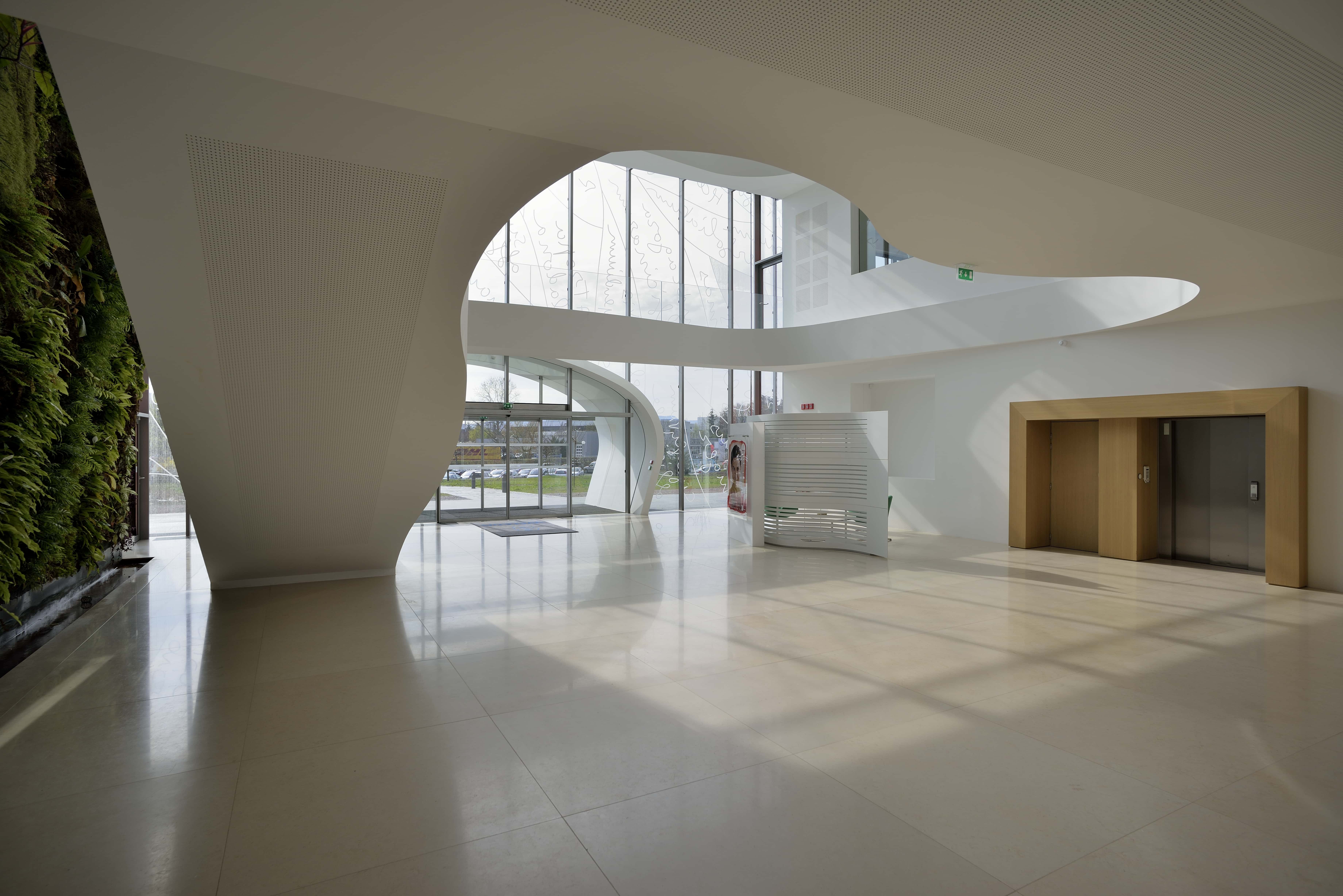 Le projet porte sur la restructuration et l’extension du site pharmaceutique et tertiaire de Weleda à Huningue, afin d’accompagner l’évolution des activités de production, de logistique et de services. Le redéploiement du site améliore les flux, intègre de nouveaux laboratoires et unités de conditionnement, et renforce le pôle administratif et d’accueil. L’extension architecturale traduit les principes de la philosophie anthroposophique de Weleda : matériaux sains, gestion fine de la lumière, intégration du végétal et recours aux énergies renouvelables. La façade double peau en verre sérigraphié, inspirée de la pharmacopée de la marque, dialogue avec le biotope paysager d’entrée.